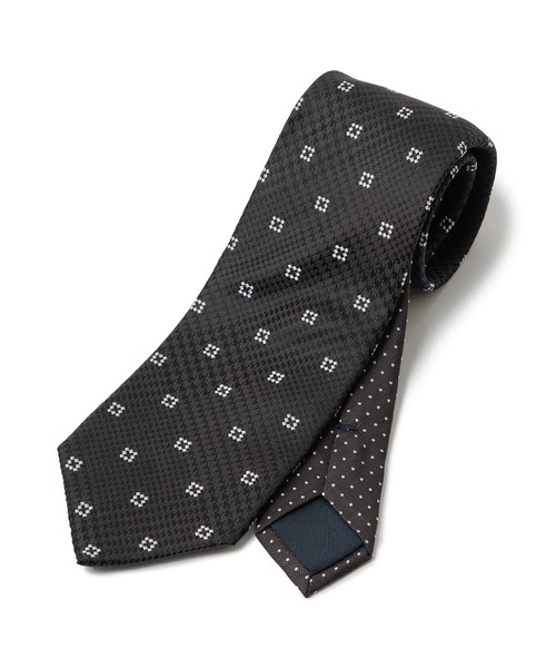 【ビジネスにもパーティにも。さりげない遊び心が効いたシルクネクタイ】小紋グレンチェックxドット柄シルクネクタイの組み合わせが絶妙なネクタイ。結んだときに小剣の柄がちらっと覗き、洗練された大人の遊び心を演出します。毎日のビジネスシーンはもちろん、パーティーや式典など華やかな場面でも活躍します。【デザイン/素材】大剣部分には小紋グレンチェック柄を採用し、小剣にはドット柄を配置した、小剣クレリックタイプ。控えめながらも個性を感じさせるコンビネーションが、大人の余裕と品格を演出します。素材はシルク100%。上品な光沢感としっとりとした質感で、高級感があるのはもちろん、キュッと締めやすく結び目が解けにくいのも魅力です。【ディテール】メインの柄となる小紋グレンチェック柄は、定番ながら胸元を端正に印象付けます。小剣には小さいながらも、配色によりさりげない存在感を発揮するドット柄を採用。シワの回復性に優れており、持ち運びや出張時にも安心です。普段使いはもちろん、結婚式や式典など華やかな場面にも最適。※照明・光の加減、PCやスマートフォンなどの環境により、製品と画像のカラーの見え方が異なる場合がございます。※画像はサンプルのため、色味やサイズ等の仕様が変更になる場合がございます。※サイズは弊社規定の採寸によって記載しておりますが、若干の個体差が生じる場合がございます。