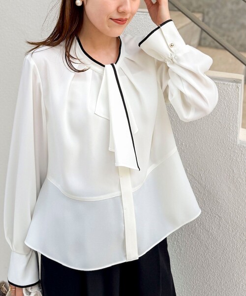 ◇26SS◇NOLLEY'S◆Point・毎年好評のボウタイ風取り外しブラウスがリニューアルして今年も登場!・今年は襟の詰まりをゆるくして、柔らかい印象に・ペプラム切替と袖口をゴムで止まる仕様に変更・ボウタイは両面仕様で、片面はフリルを大きくとり、より華やかな印象に・スーツインナーとしての着用もスッキリした印象でおすすめ・ボウタイは取り外しも可能・同素材ワイドパンツ(6-0035-1-09-007)と、セットアップでセレモニーでの着用もおすすめ・手洗い可●お取扱い上のご注意●末永くご愛用頂くために、アテンションタグを必ずご確認の上、着用又はお取り扱い下さい。気になる商品は、お気に入り登録がオススメです!クーポン情報、入荷情報が、通知されるようになります。※店頭及び屋外での撮影画像は、光の当たり具合で色味が違って見える場合があります。商品の色味は、スタジオ撮影の画像をご参照下さい。※商品画像に関しては出来る限り忠実に表示出来るよう努めておりますが、お客様がご利用のモニターの設定及び特性により、実際の商品と比較し色味に若干の誤差が生じる場合があります。※画像の商品はサンプルとなりますので実際の商品と仕様、加工、サイズが若干異なる場合がございます。