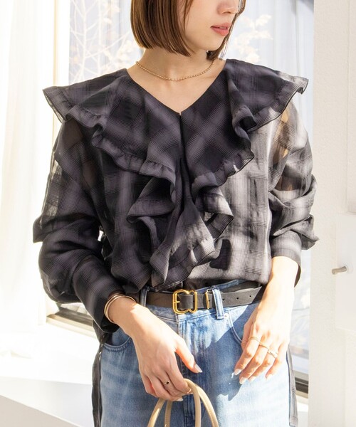 ◇26SS◇2nd NOLLEY'S◆Point・ラッフル端にフリル布を付けた立体感のあるボリューム襟が、新鮮なアクセントのブラウス・ホワイト(10)は、キャッチワッシャー加工による、手でもみ込んだようなナチュラルなシワ感が魅力のコットン100%・他2色(15)(95)は、再生繊維(セルロース)混のシアーチェック素材を使用・ゆったりめのシルエットで、シャツとしてはもちろん羽織としても活躍・袖口はアジャスト釦付きで、シルエット変化が楽しめる一枚・真夏以外のロングシーズン着用可能・手洗い可●お取扱い上のご注意●末永くご愛用頂くために、アテンションタグを必ずご確認の上、着用又はお取り扱い下さい。気になる商品は、お気に入り登録がオススメです!クーポン情報、入荷情報が、通知されるようになります。※店頭及び屋外での撮影画像は、光の当たり具合で色味が違って見える場合があります。商品の色味は、スタジオ撮影の画像をご参照下さい。※商品画像に関しては出来る限り忠実に表示出来るよう努めておりますが、お客様がご利用のモニターの設定及び特性により、実際の商品と比較し色味に若干の誤差が生じる場合があります。※画像の商品はサンプルとなりますので実際の商品と仕様、加工、サイズが若干異なる場合がございます。