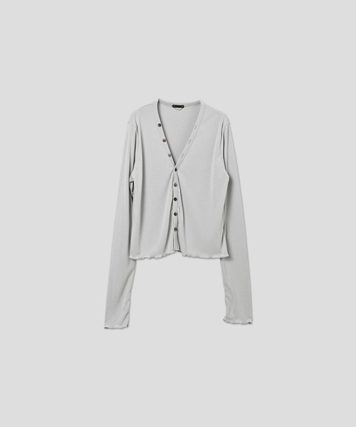 ユーティリティカーディガン UTILITY CARDIGAN コンパクトな身頃と長めの袖のバランスが特徴的な釦カーディガンです。 袖口のサムホールはデザイン要素と機能性を兼ね備えています。 ネックラインまでつくマーブル調のボタンが程よいアクセントになっています。 コットンのような風合いをもつポリエステル100%のフライス素材を使用。 吸水速乾性に優れ、UVカット機能も兼ね備えたイージーケア素材です。 COTTON TOUCH PE RIB PE=100% [Fabiric] 表地: ポリエステル 100% 光沢感: なし / 伸縮性: あり / 透け感: なし 2026 SPRING COLLECTION「 機能美へのこだわりとあ自然と共存する静けさ表現。日常の風景いも、やわらかな自然の中にも馴染む、心地よいデイリーウェア。穏やかな時間に寄り添いながら、日々を軽やかに彩ってくれる。KHA:KIが今シーズン提案するのは変わらない日常に、静かな余白を添える服。 「KHA:KI / カーキ」 ブランド名カーキはオリーブ、キャメルなどミリタリーウエアの色全般を差すコトバとして使われているちょっと変わった色。もともと土ぼこりを意味した「KHA:KI」今では誰もが日々慣れ親しんでいる色。いつも身近ににあるカーキ―色。ミリタリーウエアの様ないつまでも枯れない普遍性。ずっと長く着続けて欲しい。そんな思いがこのブランドには込められています。 [商品のお気に入り登録をおすすめです!] ハートマークをクリックすることで完売カラーの再入荷や、ラスト1点の通知や値下げなどお得な情報の通知を受ける事ができます。 [ブランドのお気に入り登録も是非!!] 新商品や再入荷など、いち早くブランドのお得情報を受け取ることができます。