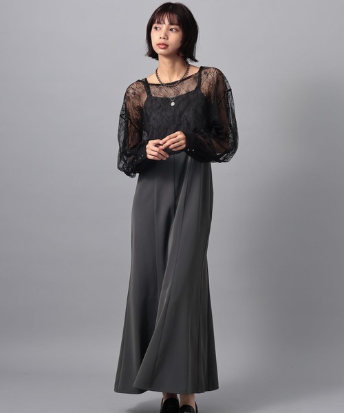 \ <WEB限定アイテム> 甘すぎない、大人レースワンピース/レースショートトップスとキャミワンピースがセットになったオケージョンワンピ。シンプルなキャミワンピに、甘すぎないレースデザインのショートトップスを重ねて、モードで大人っぽい印象に仕上げました。キャミワンピースはアジャスター付きで長さ調節が可能。タイトすぎず、身体のラインを綺麗に見せるマーメイドシルエットで、裾に向かって自然に広がることでヒップラインも拾いすぎません。ジャケットなど羽織りを合わせた時も、きれいなシルエットで着られます。ショート丈レーストップスは丈にこだわり、短すぎず長すぎない絶妙なバランス。脚長効果が抜群で、スタイルアップを叶えてくれます。結婚式や二次会、同窓会、成人式などのオケージョンシーンにぴったり。ブラウスとワンピースはセパレートで使えるので、デイリーにも着回し自在です。レーストップスはデニムと合わせてカジュアルに、キャミワンピは手持ちのスウェットやブラウスを重ねて普段使いにも◎ネックレスが映えるすっきりとした首元で、アクセサリー合わせも楽しめます。セットでも単品でも活躍する万能ドレスです。〈注意事項〉・サンプルにて撮影をしておりますので、実際の商品とは素材や仕様・加工・サイズ等が若干異なる場合がございます。・モニター・環境等により実際の商品と色味が多少異なって表示される場合がございます。予めご了承をお願いいたします。・撮影環境により、光の当たり具合で色味が違って見える場合があります。あらかじめご了承下さい。▼気になるアイテムは《お気に入り登録》がおすすめです!完売カラーの再入荷情報、セール情報、ラスト1点の通知を受け取ることができます!▼《ブランドのお気に入り登録》で新商品や再入荷などのお得な情報をいち早くお知らせします。