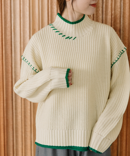 ■Pointざっくりとした編み目と、ゆったり着られるラグランスリーブが魅力の、毎日着たくなるベーシックニット。首元まで暖かいハイネックで、配色デザインがさりげないアクセントに。ハンドステッチ刺繍がポイントです。柄ボトムやカラーパンツなど、ちょっと遊び心のあるアイテムとも相性抜群!--------------------透け感:なし厚さ:普通伸縮性:あり--------------------◆注意事項◆可能な限り実物に近いカラーにて掲載しておりますが、ご使用のパソコンやスマートフォンなどの端末の環境によって、実際の色味と異なって見える場合がございます。予めご了承ください。サンプルで撮影している商品もございます。その場合、実際の商品とは色味・仕様が異なる場合がございますので、予めご了承ください。POU DOU DOU プードゥドゥひと手間加えた存在感のある「日常着」いつまでもときめきとかわいいを忘れない方への愛着を持てるワードローブ= お気に入り登録がおすすめ!=お得な情報をいち早くお届け致します。アイテムをお気に入り⇒ SALE START / 完売COLOR再入荷 / LAST1点 etc...ブランドをお気に入り⇒新商品 / 再入荷 /クーポン・セール情報 etc...