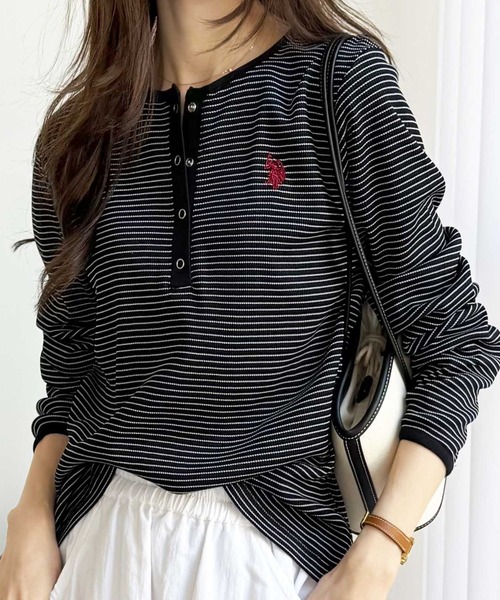 人気のU.S. POLO ASSN.×GeeRA 大人カジュアルスタイルに大活躍のワッフル素材カットソー 〇U.S. POLO ASSN.とGeeRAのコラボ商品 〇トレンドのヘンリーネックデザイン 〇程よいフィット感でスタイルアップ効果◎ 〇大人カジュアルな雰囲気をプラスするワッフル素材 ■デザイン U.S. POLO ASSN.×GeeRAのコラボ商品からNEWデザインが登場! GeeRAでしか買えない別注オリジナルアイテムです♪ トレンドのヘンリーネックデザインに、ポイントの配色をプラス。 凹凸感のあるワッフル素材は伸縮性があり、ストレスフリーな着心地◎ 程よいフィット感のあるシルエット&細めのボーダーが華奢見せを叶えてくれます! 1枚持っておくと重宝するアイテムです! ■素材 伸縮性のあるワッフル素材 …………………… 透け感:なし 厚さ:普通 伸縮性:あり 裏地:なし 洗濯方法:洗濯機 …………………… ■コーディネート シンプルなデザインで大人カジュアルコーデに大活躍! デニムはもちろん、タイトスカートやスウェットパンツとも相性抜群。 1枚着でも、インナーとしても使え、使い勝手の良いアイテムです。 ※商品によって柄の出方が異なる場合があります。 --------------------------------------------------------------------- ※サイズ寸法は実際の寸法と多少の誤差がある場合が ございます。 ※ご覧いただいているPC/WEB環境や撮影環境により、 多少色味が異なって見える場合がございます。 【お買い物をよりお楽しみいただく為に】 ▼商品のお気に入り登録をおすすめします♪ 『♡をクリック!』 完売カラーの再入荷やラスト1点の追加、 セールの際の通知を受ける事ができます。 ブランドのお気に入り登録もご一緒にお願い致します。 ---------------------------------------------------------------------