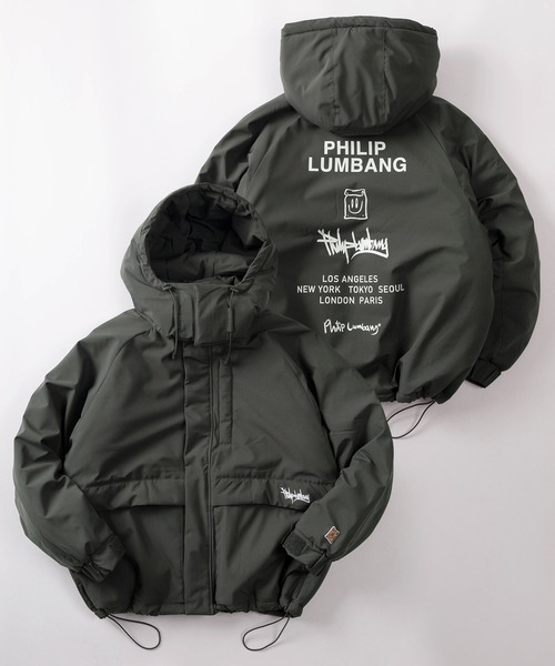 【75】【Philip Lumbang/フィリップ・ランバン】2WAY ロゴアートデザイン 中綿 フードジャケット/ワンポイント刺繍/ドローコード/防風/2025AW新ブランド
