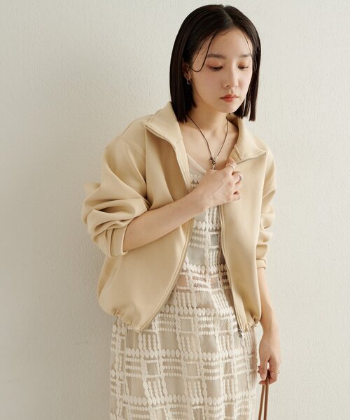 大人カジュアルな着こなしが叶うポンチブルゾン・ハリと伸縮性のあるポンチ素材を使用した、カジュアルブルゾン。・シンプルなデザインがスタイリングに溶け込みやすく、デイリー使いしたくなる一枚です。・ダブルジップ仕様なので、ジップの開き具合で幅広い着こなしを楽しんでいただけます!・裾にドローコードが付いているので、広がり具合やシルエットをお好みで調節していただけます。・ストレッチ性がありリラクシーな着心地に加え、表面のハリ感できちんと見えするのも嬉しいポイント◎・透け感:なし・裏地:なし・伸縮性:あり・生地の厚さ:普通・光沢:なし・ポケット:あり〈洗濯方法〉手洗い可能--------------------------------------【商品のお気に入り登録】♡をクリックで気になるアイテムをお気に入り登録していただくと、以下の通知を受け取ることができます。・入荷・再入荷・ラスト一点・セール対象時【ブランドのお気に入り登録 】 新商品や再入荷、セール、クーポン配布などお得な情報を受け取ることができます。--------------------------------------※画像の商品はサンプルです。実際の商品と仕様、加工が若干異なる場合があります。※カラーにより糸の風合いが異なるため、個体差が生じる場合がございます。※商品の色味は、撮影場所や光の当たり具合などにより色味が異なって見える場合がございます。また、お客様のお使いのPC・スマートフォン等のモニター環境などにより色味が異なって見える場合がございます。予めご了承の上ご注文ください。