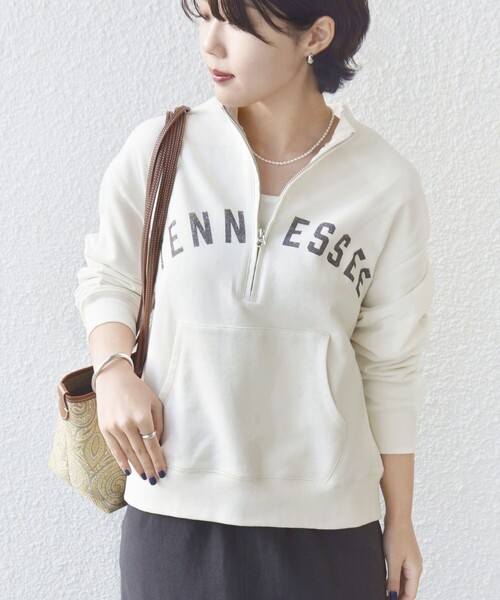 ―26SS― レイヤードを楽しめるハーフジップスウェット ■デザイン TENNESSEERIVERとの完全別注アイテムです。 深めに開くハーフジップデザインで、インナー次第で旬のレイヤードスタイルを楽しめます。 上まで閉じても顔周りがすっきりと見える襟ぐりやフロントのポケットが特徴。 ロゴプリントとボディの加工感がポイントになり、一枚で着映えるデザインです◎ ■素材 ドライな質感の糸を使用しており、薄すぎず厚すぎない「スタンダードなウェイト」の素材です。 裏毛になっている為、肌離れが良いのが特徴。 また、製品染めをする事でふっくらとしたボリューム感が生まれます。 加工法は古着風にするなら「顔料染め(ピグメント)」を選びがちですが、あえて「反応染め」をセレクトし、きれいめなヴィンテージ感を演出しました。 白茶けたようなユーズド感ではなく、新品ながらも洗いざらしのような馴染んだ風合いに仕上がり、高級感や清潔感があります。 ■お問い合わせ品番:312-01-1184 【TENNESSEERIVER】 TENNESSEERIVERは1980年代初頭にアラバマ州フローレンスで設立。 当時はテキスタイル産業が盛んな地域として「Tシャツの首都」と呼ばれていました。 VintageのロックT・企業T・カレッジTなどにインスピレーションを受けた独自のアートワークを創り出すとともに、TENNESSEERIVERオリジナルのベーシックなボディに対し、研究を重ねた独自の加工感を提案しています。 数あるプリンタブルボディの中で、他にはない特別な存在感を持つブランドでありたいとTENNESSEERIVERは考えます。 今後Tシャツだけにとどまらず、幅広い商品ラインナップを展開していきます。 ------------------------------------- 生地の厚み:中間 伸縮性:有 透け感:無 光沢感:無 ポケット:有 手洗い:洗濯機可 ------------------------------------- ※【着丈】こちらの商品は肩から一番高い位置より計測しております。予めご留意ください。 ※本製品は製品染めの特性上、サイズに若干の個体差が生じる場合や、色落ちする可能性がございます。あらかじめご了承ください。 ※撮影環境により商品の色味が異なって見える場合がございます。商品のお色味は、物撮り画像をご参考にしてください。 ※末永く愛用頂く為に、アテンションタグを必ずご確認の上、着用又はお取り扱いください。 ※画像の商品はサンプルです。 実際の商品と仕様、加工、サイズが若干異なる場合がございます。