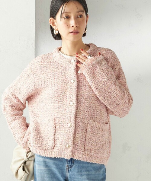 ―26SS― カーディガン感覚で気軽に羽織れる 表情豊かなツイードライクニットジャケット ■デザイン コンパクトめなサイズ感であるつつ、どんなボトムやコーディネートにも合わせやすいサイズ感のニットジャケットになっています。 かの子編みの編地で表面感があり、袖口のフリンジディテールもさりげなくきいていて、雰囲気のある仕上がりになっています。 しわが目立たないので持ち歩きにも最適です。 ■素材 カール(ひげ)状のシャギーヤーン、4色MIXヤーン、ハブラシのような形状のファンシーヤーンの3種類の糸を組み合わせて、かのこ編みにしたツイード風のニット素材です。 ニットなので伸縮性があり、とても着心地が良いのが特徴です。 夏以外は、通年を通して大活躍な素材感です。 ■コーディネート カジュアル合わせ、きれいめ合わせ、どちらもおすすめです。 ■お問い合わせ品番:316-21-1037 ▼シリーズもございます。 ミックスカラー Vネック プルオーバー(品番:316-61-0270) ------------------------------------- 生地の厚み:中間 伸縮性:有 透け感:やや有 光沢感:有 ポケット:有 手洗い:手洗い可 ------------------------------------- ※【着丈】こちらの商品は肩から一番高い位置より計測しております。予めご留意ください。 ※着用の際は、バッグやアクセサリー、表面の粗い物等への引っ掛かりに十分にご注意ください。 ※撮影環境により商品の色味が異なって見える場合がございます。商品のお色味は、物撮り画像をご参考にしてください。 ※末永く愛用頂く為に、アテンションタグを必ずご確認の上、着用又はお取り扱いください。 ※画像の商品はサンプルです。 実際の商品と仕様、加工、サイズが若干異なる場合がございます。