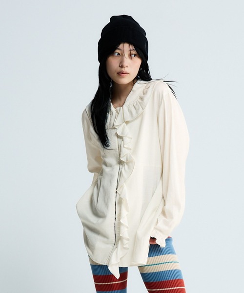 ーーーたっぷりのフリルデザインがトレンド感◎長めの着丈で幅広い着こなしが楽しめるシャツチュニックーーー■Designフロントと袖に施した大胆なフリルデザインと、ビッグカラーがポイント★甘めのフリルデザインも、ドライな素材感でJEANASISらしく楽しめるアイテムです。1枚での着用はもちろん、ニットやスウェットとのレイヤードスタイルも楽しめます。ゆったりとした身幅・シルエットで、着心地が良いところもポイント♪■Material リネンのナチュラルな風合いとレーヨンの柔らかさ・落ち感を合わせた軽やかな着心地がポイント。リネンのチクチク感は感じにくく、さらっとした肌当たり・着心地の良い生地を使用しています。■Styling腰回りをすっぽりと覆うチュニック丈で、ボトムを選ばずに幅広いスタイリングが楽しめます。フレアパンツやカプリパンツのような細身のアイテムとの相性◎寒い時期はニットやスウェットのインナーとしても着用できるので、長い期間楽しめます。トップスとしてはもちろん羽織としての着用もオススメです。-INFORMATION-◆お買い物をよりお楽しみいただく為に『♡』をクリックしてお気に入り登録がおすすめ!・完売カラーの再入荷通知や、ラスト1点の通知、セールになった際も通知を受け取ることができます★◆ブランドのお気に入り登録新商品や再入荷など、お得な情報を受け取ることができますので、是非ご登録ください♪※屋外の光や照明の当たり具合で、実際の商品の色味とカラー別画像の色味に違いが発生する場合がございます。 商品の色味はスタジオ撮影の詳細画像にてご確認ください。