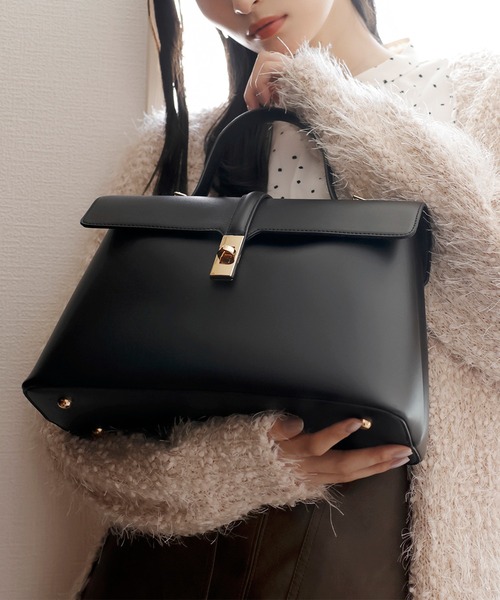 【2026 Spring】【26SS】<POINT>・取り外し可能なショルダー付きで2WAY仕様。・ショルダーをジョイントする金具もこだわりのデザインです。・底ビョウをつけて、直接床に置いても汚れにくい作りにしています。・内側には仕切りポケット付き。底まで着いていないので、お弁当箱などマチがあるモノを入れるときは前後にずらすことが出来ます。・背胴側にICカードなどを入れていただけるポケットが付いています。・長財布、500mlペットボトル、折りたたみ日傘が入る大きさ。・11インチのiPadproもしっかり入る大きさ。【デザイン・シルエット】通勤/オフィスカジュアル、休日のお出かけ、大切な日のお出かけと幅広いシーンで活躍してくれる軽くて使い勝手の良いバッグです。ハンドルやフラップに肉盛りしたり、裏を配色にするなど高級感のある仕上がりですが、軽くて持ち運びしやすいのでおすすめです。■同シリーズのミニサイズもチェック!品番:BVX44070、BVX36070【カラー】新たにシルバー金具のブラックと、ゴールド金具のキャメル色が登場。ベーシックで活躍するカラー展開。※ブラック(01),グレー系(09):WEB限定カラーとなります。【おすすめのスタイリング】通勤スタイル/オフィスカジュアルはもちろん、入学式(入園式)や卒業式(卒園式)などのセレモニー、七五三やお宮参りなどのフォーマルシーンにお使いいただけます。春には今年トレンドのスカーフ合わせもオススメです。-----------------------------ポケットの数:内×2、外×1A4収納:×長財布収納:〇ショルダー紐:あり(長さ調節可)-----------------------------※画像の商品はサンプルです。 実際の商品と仕様、加工、サイズが若干異なる場合がございます。※前回好評だったひねり金具ワンハンドルバッグ/2WAY(品番:BVX44050)と同型。【前回のひねり金具ワンハンドルバッグ(品番:BVX44050)との違い】・シルバー金具のブラック(01)と、ゴールド金具のキャメル色(25)が新たに登場。※ブラック(01),グレー系(09)は、WEB店舗限定の商品です。実店舗での販売はしておりません。