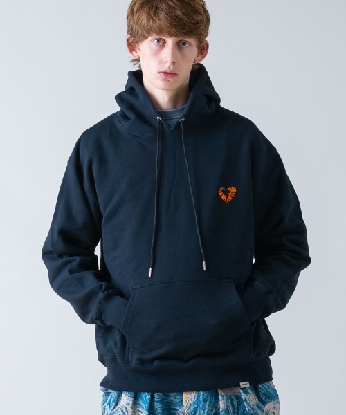 【 生地 】12oz の裏パイルスウェットを使用。ふっくらとした肉感を持ちながら、裏糸には通常より太いパイル糸を編み込むことで、重厚感と耐久性を両立しています。 型崩れしにくく、シーズンをまたいで長く着用できる安心感のある素材です。 肌当たりも柔らかく、幅広い季節で快適な着心地を提供します。 -------------------------------------------------- 裏地:なし 透け感:なし 生地の伸び:ナチュラルストレッチのみ 光沢感:なし ケア方法:洗濯機洗い可 -------------------------------------------------- 【 デザイン・シルエット 】 ふっくらとした12oz 裏パイルスウェットを採用し、太番手のパイル糸を編み込むことで適度な重みと耐久性を持たせた、長く愛用できるフーディです。 型崩れもしにくく、デイリーに頼れる一枚です。 左胸には草花をモチーフにしたハート刺繍をさりげなく添え、シンプルな中にも rehacer らしい温度感を表現。 ややゆとりを持たせたシルエットはリラックス感がありながらも野暮ったさのないバランスで、幅広いスタイリングに馴染みます。 飽きのこないミニマルなデザインで、季節を問わずワードローブの定番として活躍するフーディです。