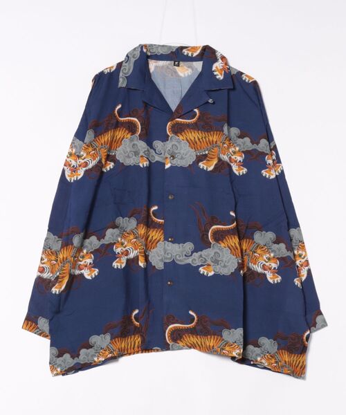 チベットの仏教美術、掛軸『タンカ』を切り抜いたような迫力ある絵柄をボーダー状にデジタルプリントで表現。軽やかなレーヨン素材で着心地の良い長袖開襟メンズシャツ。吉祥文様の雲やチベットにちなんだモチーフが調和した、コーデの主役に活躍するデザインです。●ホワイト【龍 -DRAGON-】権力や守護神、雷の化身、幸運や邪気払いの象徴。●カーキ【ヤク -YAK-】チベットの人々にとって生活の糧となる重要な存在。●ネイビー【虎 -TIGER-】勇気、力、智慧、慈悲の象徴。魔除けの意味合いも◎※こちらの商品は1点1点職人による手作りとなります。その為、生地の取り方により柄の配置や形・色合いなど若干異なる場合がございます。(画像は一例です。)あらかじめご了承ください。※屋外での撮影画像は、光の当たり具合で色味・カラーが違って見える場合がございます。商品のカラーは、スタジオ撮影の画像をご参照ください。Amina Collection Co.,LTD.