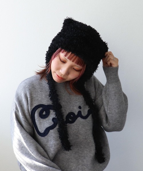 人気の耳付き帽子が今年も登場! まぁるい耳とふわふわもこもこ素材が可愛い帽子。 ざっくり編みで伸縮性があります。 耳まであったかな冬の可愛い必需品。 紐を結んで可愛さをプラスするのもおすすめです。