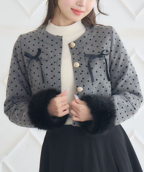 〈中綿だからとっても暖かいガーリージャケット〉 ▼デザイン ゴールドボタンで高級感溢れるデザインジャケット。 毛足の長いフェイクファーが袖口についていて、暖かいデザイン。 中綿がしっかり入っているので真冬も暖かく着用いただけます。 胸元のリボンがemsらしいワンポイント♪ ▼コーディネート ミニ丈のスカートやワンピースの上に羽織るとジャケットのデザインに合ったガーリーなコーデに。 ボトムはシンプルにデニム合わせでも上品に仕上がるジャケットです。 ------------------------------ 生地感:厚手 伸縮性:なし 透け感:なし 裏地:ある ------------------------------ ▼ブランド紹介 ems excite (エムズエキサイト) “more fun more cute” 今をもっと楽しく もっと可愛くいたい女の子に向けた girly cuteなブランド #ジャケット #ガーリージャケット #韓国コーデ #アウターアイテム #中綿ジャケット #ファージャケット #リボン ▼注意事項 ※撮影環境やモニター環境によって実際の商品とお色味が 多少異なってみえる場合がございます。 品番:EW580021G007 / 品名:ファー付中綿リボンJK