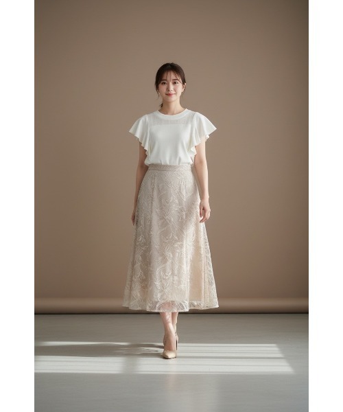 【ラッフルフリルが華やぐ、上品フェミニンニットプルオーバー】 【Point】 ・肩から袖にかけてあしらった立体的なラッフルフリルが、動くたびにやわらかく揺れ、華やかな印象を演出します。 ・身頃はすっきりとしたシルエットで、甘さの中にも大人っぽさをプラスします。 ・デコルテまわりはさりげない編地切り替えを施し、シンプルながらも表情のあるデザインに。 ・スカート合わせはもちろん、パンツスタイルにもマッチし、通勤からお出かけまで幅広く活躍します。 ケア方法:手洗い可能 透け感:デコルテ部分のみあり 裏地:なし 伸縮性:あり 光沢感:なし 生地の厚さ:薄手