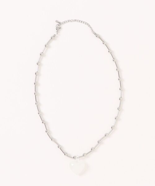 ■素材 水、汗に強く傷つくにくいステンレス素材を使用。 変色しづらく耐久性に優れているのが特徴です。 ハート部分はガラス素材で出来ています。 ■デザイン 立体的なハートモチーフが映えるネックレス。 シンプルなコーデにもポイントになります。