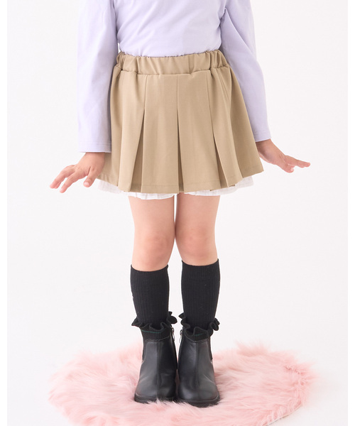 上品な可愛らしさが魅力の、タックプリーツスカートです。 きちんと感のあるプリーツデザインながら、インナーパンツ付きでアクティブなお子様も安心して着用できます。 インナーパンツの裾フリルがスカートから控えめに見え、キュートな印象を与えます。 ウエストはゴム仕様で、着脱も簡単♪小さなお子様でも一人で着替えられます。 普段使いはもちろん、お出かけやちょっとしたお呼ばれにもぴったり。 ブラウスと合わせて上品に、Tシャツと合わせてカジュアルにと、幅広い着こなしが可能です。 【Lycee mine バレエシリーズ】 普段着使いにもお出かけにもおすすめのガーリーなアイテムラインが新登場♪ かわいいカラー展開でフリルやレース、チュール使いなど女の子の大好きがつまったシリーズです。 ※ゴム替え口・アジャスターボタン付き。 ※モデル着用写真より商品写真が最も実物に近い色味です。 ※掲載画像の商品の色味は、光の照射や角度により実物と色味が異なる場合がございます。 また表示のサイズ感と実物は若干異なる場合もございますので、予めご了承ください。 【透け感】透けない【生地の厚さ】普通【伸縮性】なし【裏地】あり【ポケット】なし【アジャスター】あり