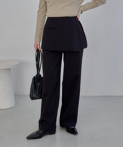 ミニスカートをレイヤードしたようなトレンドライクなパンツ商品ポイント・シンプルなトップスも映えるスタイリングに・オールシーズン着られる生地感でニットからTシャツまで幅広く着回せる・太すぎず小柄さんも挑戦しやすいシルエット・ウエストは後ろゴムでストレスフリー・ミニスカートがあることでヒップ周りをカバーしてくれ安心感も◎スタイリングポイント・コンパクトなニットを合わせて・短丈のニットやスウェット合わせもおすすめ【ブラック着用アイテム】ホックヘンリーパフニット【ブラウン着用アイテム】カーディガン風アシメニット【ベージュ着用アイテム①】ドレープスウェット【ベージュ着用アイテム②】ホックヘンリーパフニット**********************透け感:なし裏地:なし伸縮性:ややあり光沢感:なし**********************▼洗濯方法手洗い可能※この製品は、洗濯の際、多少の色落ちします。他のものと別に洗って下さい。※洗濯で若干縮みが生じることがございますのでご了承下さい。 ※撮影場所やお使いのモニター環境により若干お色味が異なる場合がございます。特にロケの撮影では明るく見える傾向にございます。※商品はサンプルで撮影をしております。若干の仕様が変更になる場合がございますので予めご了承の上ご注文くださいますようお願いいたします。▼商品のお気に入り登録完売カラーの再入荷通知や、ラスト1点の通知、セールの通知も受け取ることができます。▼ブランドのお気に入り登録新商品や再入荷など、いち早くブランドのお得な情報を受け取ることができます。