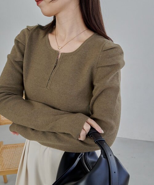 1枚で着映えする立体感のあるパフニット商品ポイント・タックで立体感を出しており大人見えするパフデザイン・甘くなりすぎないようホックタイプのヘンリーネックに・しっかりした生地感だけど柔らかく滑らかな着心地・起毛感がなく春先まで着られる・ホックを開けて抜け感を出して着ても◎スタイリングポイント・ワイドパンツでメリハリのあるスタイリング・デニム合わせのカジュアルコーデも◎・ジャケットのインナーにもおすすめ【オフホワイト着用アイテム】ピンタックフレアパンツ【ブラック着用アイテム】2タックワイドパンツ【ブラウン着用アイテム】2タックワイドパンツ【ベージュ着用アイテム】ミニレイヤードパンツ**********************透け感:なし裏地:なし伸縮性:あり光沢感:なし**********************▼洗濯方法手洗い可能※濃色製品は着用中の汗や雨、摩擦により色移りすることがありますので、白、淡色の物との重ね着は避けてください。※ピリングにはお手入れが肝心です。毎日同じ製品をお手入れなしで着続けますと、ピリングが出来易くなります。1日着用したら2日休ませるなどローテーションを考えて着用してください。ピリングが出来ましたら引っ張って取ろうとせず、ブラッシングするか、小さなハサミで1つ1つ取り除いてください。※撮影場所やお使いのモニター環境により若干お色味が異なる場合がございます。特にロケの撮影では明るく見える傾向にございます。※商品はサンプルで撮影をしております。若干の仕様が変更になる場合がございますので予めご了承の上ご注文くださいますようお願いいたします。▼商品のお気に入り登録完売カラーの再入荷通知や、ラスト1点の通知、セールの通知も受け取ることができます。▼ブランドのお気に入り登録新商品や再入荷など、いち早くブランドのお得な情報を受け取ることができます。