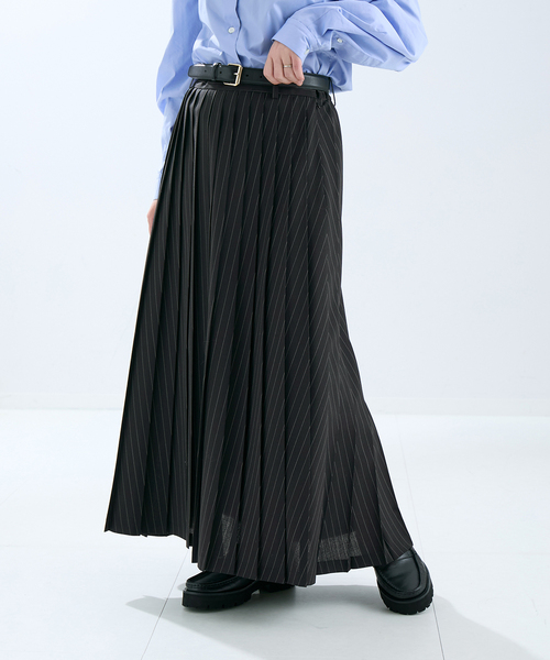 【2026 SS】JOURNAL STANDARD L'ESSAGE動くたびに美しく揺れるプリーツが魅力のロングスカート。程よいハリ感と落ち着いたカラーで、洗練された印象を演出します。シンプルなトップスと合わせるだけで、オンにもオフにも活躍する万能アイテム。シックなブラックはストライプ柄で、よりモードな雰囲気を楽しめます。**********************透け感:なし裏地:あり伸縮性:なし光沢感:なし生地の厚さ:普通**********************【スタッフ着用コメント】《スタッフI》年齢:40代前半/身長:165cm/着用サイズ:38サイズ感:私の身長で38サイズちょうどよかったです。素材感:少しハリのある素材。着心地:歩くとプリーツがきれいでマキシ丈なので広がりすぎず穿きやすいです。※あくまでも個人の感想です。**********************※取り扱いについては、商品についている品質表示でご確認ください。※照明の関係により、実際よりも色味が違って見える場合があります。またパソコン・スマートフォンなどの環境により、若干製品と画像のカラーが異なる場合もございます。※商品の色味は、商品アップ画像をご参照ください。本体:ドライクリーニング