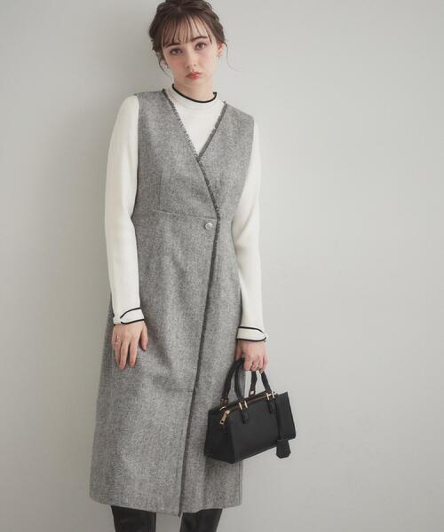 ▼▼気になるアイテムはハートマークをクリック▼▼ぜひお気に入り登録してチェックしてください♪ラップ風デザインのジャンスカです~POINT~衿ぐりから前立て端にかけて共生地で作ったフリンジテープを挟み込んでいますAラインのすっきり見えシルエットになっています。インナーにニットやブラウスを着ていただくのがオススメです!・後ろファスナーあき・裏地あり【素材】ツイードで微起毛タッチのあたたかみのある素材感です。【仕様】・ポケットなし・背中ファスナー・裏地あり※アイボリー(004)はやや透け感があります。※照明の関係により、実際よりも色味が違って見える場合があります。また、パソコン・スマートフォンなどの環境により、若干製品と画像のカラーが異なる場合もございます。【スタッフコメント】shino(164 )ツイード素材にフリンジディテールを効かせた、着るだけで華やぐジャンスカインナー次第で印象が変わり、きれいめきもカジュアルにも着回しが楽しめます!【25AW NEW ARRIVAL】【25AW NEW COLLECTION】モデル情報:身長167cm B80 W59 H82 着用サイズ:38(M)店舗へのお問い合わせ商品番号:508-54018●製品寸法:36(S):総丈105cm B88cm 肩幅37cm W75cm H101cm38(M):総丈108cm B91cm 肩幅38cm W78cm H104cm40(L):総丈110cm B94cm 肩幅39cm W81cm H107cm42(LL):総丈112cm B97cm 肩幅40cm W84cm H110cm備考: