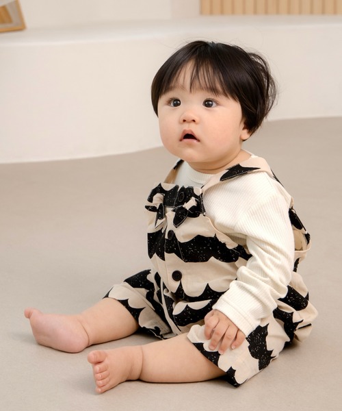 ちょっとだけ大人っぽい柄に挑戦してみたい時にぴったりのなみなみ柄! 北欧カラーのテキスタイルでおしゃれな着こなしができるベビーオールです。 肩紐は自由に調整できるので、インナー次第で長くどのシーズンでも着用いただけます◎ おそろいのカバーオールやブルマもあるので、お友だちとのリンクコーデも楽しめます◎ 同じデザインのカバーオール品番:M610412 同じデザインのベビーブルマ品番:M610416 ◆お気に入り登録について 気になる商品のカラー/サイズのハートマーククリックしてお気に入り登録をしておくと、再入荷やオトクなタイムセールのご案内などを受け取ることができます♪ ◆ブランドのお気に入り登録について 新商品やお得なタイムセール、クーポンなどのご案内を受け取ることができます♪ あわせてぜひご登録ください☆