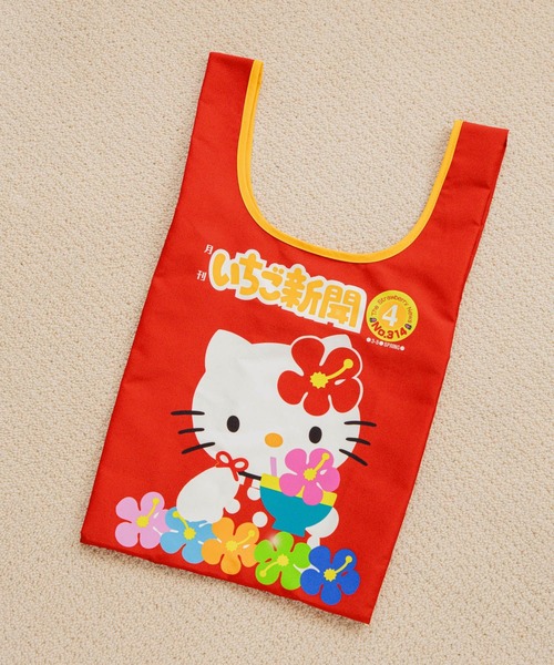 いちご新聞のデザインをプリントしたナイロン素材のエコバッグ。ハンドル部分の配色パイピングと、裏面のキャラクターロゴがさりげないアクセントになります。エコバッグを使わない時は、付属のゴムで畳める仕様にしているので収納しやすく、シワになりにくいので気軽に使えるのも嬉しいポイントです。別売りの【いちご新聞】フェイスポーチの中にも収納可能なので、セット使用もおすすめです。(C)2025 SANRIO CO., LTD. APPROVAL NO. L655661