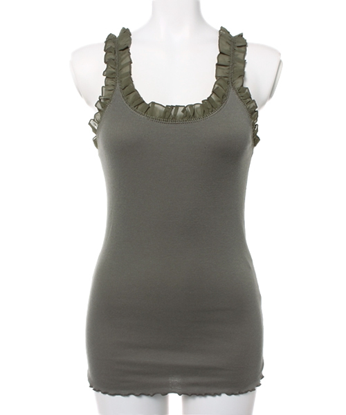 【one after another NICE CLAUP】(ワンアフターアナザーナイスクラップ) ~秋の新作 new arrival~ ショルダー部分とネックラインに施されたフリルがラグジュアリー感を醸し出すタンクトップ。 背中のクロスストラップがコーデにニュアンスをプラスしてくれます。透け感のあるトップスを組み合わせた着こなしもお勧め。 豊富なカラーバリエで色違いでも揃えてみたい。 ショップへお問い合わせの際は下記品番をお伝え下さい。品番:126600092