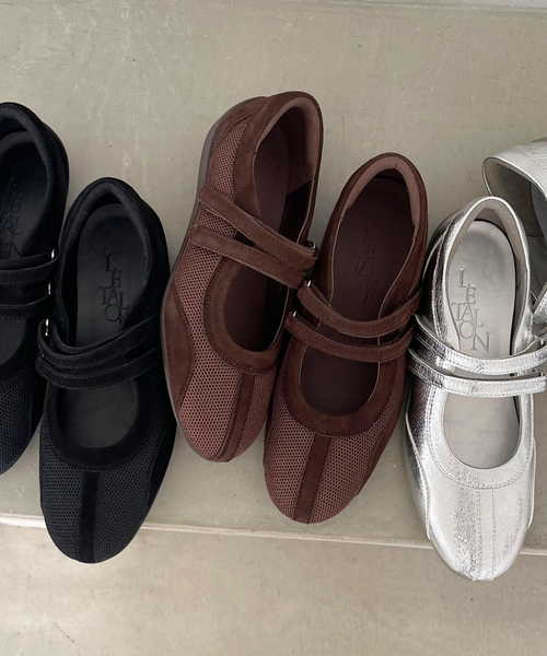 すっきりとしたフォルムのLE TALONオリジナルソールと、ダブルストラップデザインが今年っぽいメリージェーンスニーカー。フラットシューズ感覚で履けるボリュームなのでカジュアルになりすぎず、合わせるボトムスを選ばないのも嬉しい1足。カップインソール内蔵で軽量かつ返りの良いソールを採用し、履き心地にもこだわりました。シルバーはこなれ感のあるクラック加工のメタリック、ブラックとブラウンはスエードとメッシュの素材コンビなので重たく見えず、一年を通して履いていただけます。**********************【スタッフ着用コメント】《スタッフH》普段サイズ:23.5/着用サイズ:23.5サイズ感: 素足で着用してちょうどよい履き心地:いつものサイズで丁度よかったです。このままのサイズで普通の厚さのソックスなら履けます。ストラップは面ファスナーなので着脱も楽で、レッグウェアなど履いてもフィット感微調整できるので便利です。ふかふかの足あたりでたくさん歩く日におすすめ。***********************カラーにより素材が異なります。 ブラックA・ブラウン 甲材:人工皮革、合成繊維シルバー 甲材:人工皮革*照明の関係により、実際よりも色味が違って見える場合があります。またパソコン・スマートフォンなどの環境により、若干製品と画像のカラーが異なる場合もございます。*商品の色味は、商品アップ画像をご参照ください。