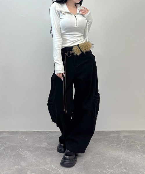 ウエストにあしらったフェイクファーディテールが目を惹く、Y2Kムード全開のデザインカーゴパンツ。ミリタリー要素の強いカーゴポケットに、トレンドのファー×スリムロングベルトを掛け合わせた韓国ストリートらしい存在感のある一着です。ゆるっとしたワイドシルエットで脚のラインを拾わず、トップスを選ばずバランスよく着こなせます。厚めのコットン素材でロングシーズン活躍。■ カラーブラック、ブラウン、ベージュの3色展開【生地感】--------------------------裏地:なし透け感:なし生地の伸び:ややあり光沢感:なしポケット:あり--------------------------*ご覧のモニター環境や撮影環境に応じて実際の商品の色と異なって見える場合がございます。ご了承ください。*素材の特性を考慮して管理法留意事項を購入/着用する場合は必ずご確認をお願いします。*サイズの測定方法によって1~3cm程度の誤差が生じることがございます。*全ての商品の最初の洗濯はドライクリーニングをお勧めし、乾燥機のご使用はご遠慮ください。*洗濯不注意による商品の損傷の交換/払い戻しのご対応は難しくなっております。【商品のお気に入り登録】お気に入りの商品やサイズ・カラーまで、お気に入りの登録をしていただきますと、そのアイテムのセールの通知、ラスト1点になった時の通知や、完売しても再入荷通知を受け取ることができます。【ブランドのお気に入り登録】新商品の発売や再入荷、タイムセール情報やクーポン発行のお知らせなど、FOLLOWINがお届けするお得な情報を受け取ることができます♥ ▶ブランドの最新情報はinstagram【@followin】でご確認いただけます!* 注文履歴ページよりご注文いただいた商品の配送時間を確認できます。* 他のキャンペーンにより、価格が変わる場合があります。※他のキャンペーンにより、期間中に価格が変動する場合があります。※セールは予告なく終了させていただく場合もあります。