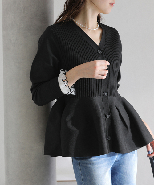 【2025AW】 LaTotalite ペプラムシルエットが女性らしさを引き立てるニット。 身頃はリブ編みですっきりと、ウエストから程よく広がるフレアラインで自然なスタイルアップを叶えます。 取り外しも可能な袖口のフリルディテールがさりげないアクセントに。 ※取り扱いについては、商品についている品質表示でご確認ください。 ※照明の関係により、実際よりも色味が違って見える場合があります。 またパソコン・スマートフォンなどの環境により、若干製品と画像のカラーが異なる場合もございます。 ※商品の色味は、商品アップ画像をご参照ください。 本体:洗濯機洗い(弱)
