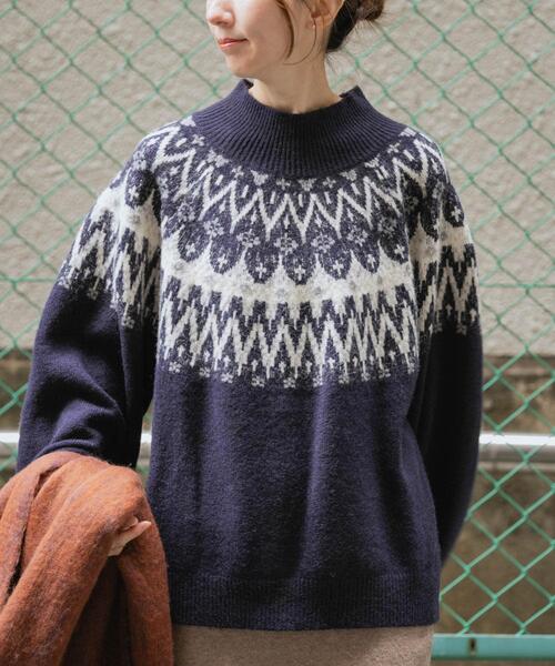 冬コーデを彩る、主役級のシャギーノルディック柄冬のムードを高めてくれるノルディック柄を、毛足の長いシャギー素材で優しく表現。ふわっとした柔らかさと包み込まれるような暖かさが魅力の一枚です。柄がほんのりぼかされることで女性らしいニュアンスが生まれ、“着るだけで冬の主役”になれる存在感あるニットに仕上がりました。【2025 Autumn/Winter】【25AW】総重量 : 約385g※商品画像は、光の当たり具合やパソコンなどの閲覧環境により、実際の色味と異なって見える場合がございます。予めご了承ください。※商品の色味の目安は、商品単体の画像をご参照ください。▼お気に入り登録のおすすめ▼お気に入り登録された商品は、マイページにて現在の価格情報や在庫状況の確認が可能です。お買い物リストの管理にぜひご利用ください。素材感透け感 : なし伸縮性 : あり裏地 : なし光沢 : なしポケット : なしFREE
