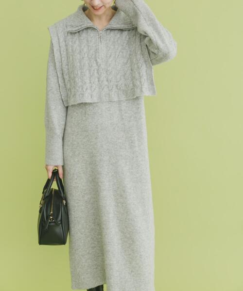 着回し広がる、旬顔セットワンピースハイネックのハーフジップニットベストを重ねるだけで、トレンド感たっぷりのワントーンコーデが完成。ベストを外せば、ワンピース単体はVネックデザインとして着られ、シンプルできれいめなIラインワンピースに。気分やシーンに合わせて印象を変えられる、マルチウェイ仕様が魅力です。セットのハーフジップベストには立体感のあるケーブル編みを施し、暖かみとデザイン性をプラス。ジップの開閉でインナーをのぞかせたり、抜け感を調整できるのもポイント。ワンピースは無駄のないシンプルなシルエットで、ベストの編地やディテールを美しく引き立ててくれます。【2025 Autumn/Winter】【25AW】総重量 : 約585g[トップス]Free : 肩幅48cm / 着丈37cm / 身幅約44cm / タートルの高さ10cm※商品画像は、光の当たり具合やパソコンなどの閲覧環境により、実際の色味と異なって見える場合がございます。予めご了承ください。※商品の色味の目安は、商品単体の画像をご参照ください。▼お気に入り登録のおすすめ▼お気に入り登録された商品は、マイページにて現在の価格情報や在庫状況の確認が可能です。お買い物リストの管理にぜひご利用ください。素材感透け感 : なし伸縮性 : あり裏地 : なし光沢 : なしポケット : なしFREE