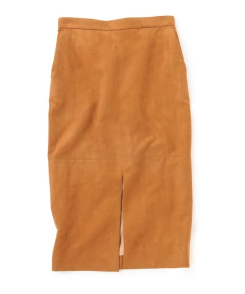 柔らかくしっとりとした風合いの秋冬マストなフェイクスエードを使用したタイトスカート。肌馴染みが良く女性らしいシルエットを見せながら、ソフトに体型カバーもしてくれます。フロントにざっくり入ったスリットが女らしさをキープしてくれます。トレンドのクラシカルなヴィクトリアン調のブラウスにブーティーを合わせれば旬を先取り!