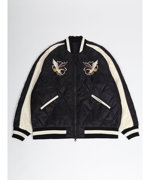 【TAION】 TAION-JK04JS-N1 ジャパンスペシャル リバーシブル スカジャン ダウンジャケット25-26AW 新作入荷■特徴""<JAPAN SPECIAL>JPNSP(ジャパンスペシャル)の渾身作、スカジャン風リバーシブルダウンジャケット""スカジャンとダウンを組み合わせた、スカジャン風リバーシブルダウンジャケット。保温性の高い800FPのダウンを使用し、軽くて柔らかな着心地を実現。肩まわりや身幅にゆとりをもたせたシルエットで、インナーに厚手のトップスを合わせてももたつかず、ストレスなく羽織れます。表側は、ダイヤキルトで左右胸に鷲と後ろには龍のスカジャン刺繍を。裏側は、配色のラグラン袖でスポーティーにも。気分やコーデに合わせて楽しめるリバーシブル仕様に仕上げました。個性的なデザインと、日常で使える実用性を両立した、ダウンウェアです。少し大きめに着用いただくスカジャンです。■シルエットほどよくゆとりのあるシルエット。■素材表地:ナイロン100%裏地:ナイロン100%リブ部分:ポリエステル97% ポリウレタン3%刺繍部分:レーヨン100%中わた:ダウン95% フェザー5%TAIONは、嵩高の高い800FPのダウン(羽毛)を採用しています。 一般で使用されるダウン(一般:600FP前後)よりも軽くて、 暖かい空気をたくさん含むことができます。【商品スペック】・リバーシブル商品です。・表地には、ベロア生地に前後スカジャン風の刺繍を入れています。・裏地には、高密度ナイロン生地を使用しています。・800FPの上質なダウンを使用しています。・前たては、YKKファスナーを使用しています。WZIP仕様により、下からスリットを設けることが可能です。・衿、袖口、裾に風合いのあるリブを使用しています。・表側左右腰には、片玉淵ポケットが付いています。・裏側左右腰には、両玉淵ポケットが付いています。・ご家庭での洗濯も可能です。※収納袋は付きません。※男女兼用サイズです。 女性の方:XS?Sサイズをお勧めします。ルーズに着用希望の方はMやLサイズをお勧めします。TAION=体温(タイオン)とは?「TAION」のブランド名の由来は、TAION=体温。 “クオリティーに対しての圧倒的コストパフォーマンスによる価値の追求 ”をスローガンとし、高品質で高機能なインナーダウンを幅広く展開しています。 色やサイズの豊富なバリエーションもTAIONの特徴です。※ダウンは天然由来の素材であるため、稀に濃い色の羽が混入することがあり、表面に透けて見える場合がございます。※こちらは不良品ではございません。返品や交換につきましてはご対応いたしかねますので、あらかじめご了承ください。(解消方法:少し目立つ箇所がございましたら両手で少し揉んで頂くと目立たなくなります。)※サイズ表記について 1=Sサイズ相当、2=Mサイズ相当、3=Lサイズ相当、4=XLサイズ相当 となります。【よりお買い物をお楽しみいただく為に】▼商品のお気に入り登録完売カラーの再入荷通知や、ラスト1点の通知、セールの通知も受けることができます。▼ブランドのお気に入り登録新商品や再入荷等、いち早くブランドのお得な情報を受け取ることがきます。