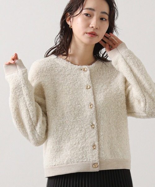 ふわふわとしたブークレ素材に煌めくスパンコールが魅力的なニットカーデ。 ぷくっとした変形ボタンも可愛いポイント。 カーデとしてはもちろん、ボタンを止めてプルオーバーのように着るのもオススメ。 ボタンを後ろにして着ることも出来る前後2way仕様。 ※商品画像は、光の当たり具合や使用しているパソコンのモニターやスマートフォン等の設定により、 現物と画像の色味が若干異なる場合もございます。予めご了承ください。 【 お買い物をもっと楽しんでいただく為に 】 ▼商品のお気に入り登録▼ 完売カラーの再入荷や、ラスト1点、セールの通知をお知らせします。 割引クーポンの発行などお得な情報も! ▼ブランドのお気に入り登録▼ 新商品や再入荷など、いち早くグレディブリリアンのお得な情報を受け取ることができます! 【Gready Brilliant】 「ほどよい存在感」を大切にする大人の女性のためのセレクトショップ。