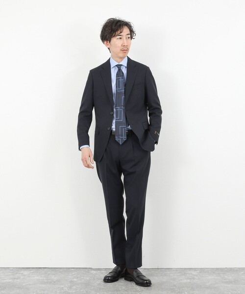 デザイン・品質・価格バランスの取れた「ザ・良いスーツ」◆素材・高品質な「尾州ウール」を使用・軽量で通気性に優れた平織りのウール生地・サラサラとした肌触りとハリのある風合いが軽やかな見え方◆仕様【ジャケット】・フロントシングル仕様(2つボタン)・センターベント・袖開き見せボタン3つ・裏仕様:半裏/大見返し/袖裏あり【パンツ】・パンツ脇の縦縫い線を利用して真っ直ぐ付くスラッシュポケットポケットの存在感もなく、サイドからの見た目もスマート。座った時にポケットの口が開きにくいので、下腹のでっぱりヒップのボリューム感の心配な方にもおすすめです。・股ずれ防止、摩擦軽減、汗吸収、下着の透け防止などの役割を持つシック布(オーダーメイドのスーツでは標準仕様になっていることも多いスラックスの股部分に縫い付けられた補強用の布)を装備。・フロント1タック・裾フラシ仕上げ(裾上げが必要になります)・緩やかにテーパードの効いたスッキリとしたシルエット・膝裏付き(上下同サイズでのセット販売となります)◆素材は毛織物の名産地「尾州」のウールを使用。ハリとコシがありながらもしなやかな生地感で、エレガントな雰囲気も。普段使いでも、特別なシーンでも活躍する一着です。【ジャケット】肩毛芯仕立てを採用し、接着芯仕立てでは生まれない立体的な美しいシルエットを実現したジャケット。程よく絞ったウエストですっきり見えのシルエット、前を開けて羽織ってもスマートな印象に。【パンツ】緩やかなテーパードで脚のラインが美しく出るよう設定。スッキリとしたシルエットでありながら、タックで機能性も担保。フロントに1アウトタックを入れ、クラシカルでエレガントなエッセンスを加えたスラックス。動作時のサポートや座った際のシワやシルエットの崩れを軽減してくれます。※「接着芯仕立て」と「肩毛芯仕立て」のハイブリッドな仕立て方法・接着芯では生まれない立体的な美しいシルエット・補正効果で肩周りを整え、男性らしい頼りがいのある背中を演出・毛芯を使うことで復元力が高く、シワや型崩れなどがしにくい・長期間の着用が可能となる耐久性も生まれ、コストパフォーマンスに優れる・首から肩に均等に重さが分散されるようなパターンメーキング(接着芯に比べると重さが出るが、デメリットも感じづらく設計)【尾州(びしゅう) / BISHU】愛知県一宮市を中心にした尾州地域は、木曽川の豊かな水と特有の自然環境に恵まれ日本一の毛織物(ウール)産地として古くから発展してきました。今では世界三大毛織物産地はイギリスのハダースフィールド、イタリアのビエラ、そして日本の尾州といわれています。糸から生地になるまでの多くの工程をこの地域の中で分業・協業によって一貫してでき、紡績、撚糸、染色、製織、編立、整理加工といったそれぞれの工程で専門的かつ高度に蓄積された知識と技術を長年にわたって継承してきました。尾州全体が一つの大きな工房・工場といえるでしょう。生み出される高い品質は、国内はもちろん海外のハイブランドからも信頼を集めており多種多様な素材の組み合わせや新しく豊かな表情のテキスタイルをつくり続けています。★気になるアイテムは【お気に入り登録】がオススメです!入荷情報やクーポン、セール情報が通知されるようになります。【お取扱い上のご注意】末永くご愛用頂くために、アテンションタグを必ずご確認の上、着用又はお取り扱い下さい。※店頭及び屋外での撮影画像は、光の当たり具合で色味が違って見える場合があります。商品の色味は、スタジオ撮影の画像をご参照下さい。※商品画像に関しては出来る限り忠実に表示出来るよう努めておりますが、お客様がご利用のモニターの設定及び特性により、実際の商品と比較し色味に若干の誤差が生じる場合があります。※画像の商品はサンプルとなりますので実際の商品と仕様、加工、サイズが若干異なる場合がございます。※製品洗い加工の商品は、多少の歪み、シワなどが見られたり、風合いやサイズ等が1枚1枚異なります。汗や雨等で濡れた時や、摩擦により色落ちし、他の衣料を汚すことがありますので(特に濃色のもの)ご注意ください。