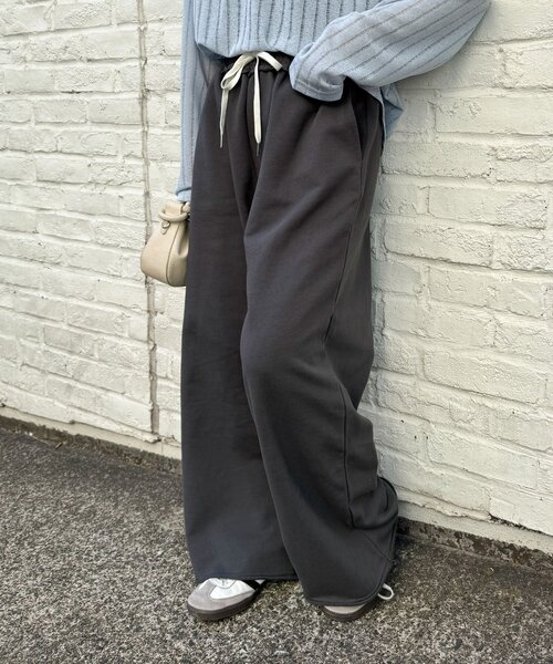 【26SS新色が登場!】トレンドのワイドシルエットが魅力♩”リラックス×きれい見え”が叶うスウェットパンツ■デザインワイドシルエットでトレンドライクな印象に。すとんと落ち感があり、すっきり見えるようにこだわりました♩ウエストの切り替えが、さりげなくアクセントになりインスタイルもおしゃれに見えます!裾部分は、切りっぱなしデザインを施して抜け感をプラスしました◎部屋着っぽくみえない、お出かけスウェットパンツです!■スタイリングオーバーサイズと合わせたカジュアルスタイリングはもちろん、コンパクトめなトップスとも相性抜群です!スニーカーでヒールなど、様々なアイテムと合わせられるのが魅力です♩■お手入れ方法洗濯:洗濯ネットを使用し、40 ℃を限度とし非常に弱い洗濯ができるタンブル乾燥:不可アイロン:あて布を使用し、150 ℃を限度としてアイロン仕上げができる・・・・・・・・・・・・・・・・・・・・・・透け感:なし裏地:なし伸縮性:あり光沢感:なし生地の厚さ:普通・・・・・・・・・・・・・・・・・・・・・・▼気になる商品をお気に入り登録ハートをクリックして《お気に入り登録》がオススメです!※【ブラック】 【グレー】はWEB限定カラーになっております。※画像の商品はサンプルを使用しております。実際の商品と若干の仕様が変更になる場合がございますので、予めご了承の上ご注文くださいますようお願いいたします※ブラック・グレーの実物は紐を白に変更しております。ご了承ください。※屋外の光や照明の当たり具合で、実際の商品の色味とカラー別画像の色味に若干の違いが発生する場合がございます。詳細画像と併せてご確認の上、ご注文いただきますようお願い致します。※独自のタイムセールなどの施策により、実店舗と価格差が発生する場合がございます。※実際の店舗在庫につきましては、各店舗に直接お問い合わせください。
