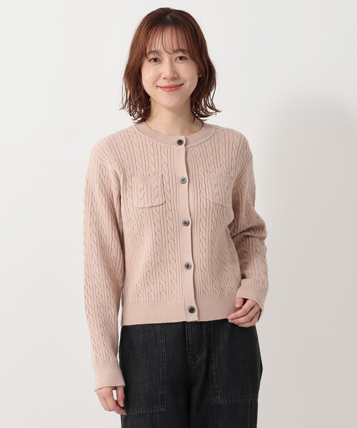 すっきりとした風合いのミニケーブル編みが上品なクルーネックカーディガンです。さまざまなアウターにインしやすい、ややコンパクトなサイズ感が魅力。クラシックな編み柄と胸元のパッチポケットがアクセントをプラスします。チェックスカートやデニム、コーデュロイのボトムス合わせなど、カレッジ風のスタイリングもおすすめです。*洗濯の際はネットを使用してください。 *アイロンを掛ける際はあて布を使用してください。