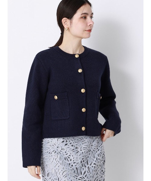 ウールのような風合いでもっちりした肌触りのニットジャケット。ジャケットのきちんと感を備えつつ、軽い着心地でリラクシーさもゲット♪ 肉厚な生地のため、インナーのアレンジ次第で長い期間着まわせるアイテムです。 ・高見えするゴールドのメタルボタンやパッチポケットがポイント ・パンツでもスカートでも相性抜群のショート丈 ・ダブルフェイス仕様は保温性に優れ、上品かつ洗練された印象に ・ご自宅でのお手入れができるウォッシャブルでいつでも清潔に ・オフィスでのジャケットとしてはもちろん、学校行事やお出かけにも着回しOK 【ショップインブランド】anysy(エニージー) anytime(いつでも)+easy(ゆったり)=anysy。”着心地・お手入れ・きちんと”をコンセプトに、ONのときもOFFのときも少しだけ肩の力を抜いて着られるシリーズです。 【仕様】ラウンドネック/長袖/5つボタン 【洗濯表示】洗濯機可(ネット使用・弱水流) ーーーーーーーーーーーーーーーーーーーーーーーーーーーー 【スタッフ着用コメント】 ①女性スタッフ 身長:152cm ・着用サイズ 38 ・着用感 ウールを使っていないのでチクチク感もなく、敏感肌の方にも安心です。 首元は内側に折込、ボトルネック風に着るのがボリューム出過ぎずオススメです! ➁女性スタッフ 身長:160cm ・着用サイズ 38 ・着用感 程よい厚みでメタルボタンがアクセントになっています🪄 ③女性スタッフ 身長:163cm ・着用サイズ 38 ・着用感 ショート丈なのでスタイルアップして見えます☺︎ またしっかり厚みもあるのでとても寒いこの時期にピッタリ❄️✨ ーーーーーーーーーーーーーーーーーーーーーーーーーーーー 【おすすめシーン】 お出かけ、ショッピング、食事会、お呼ばれ、デート、パーティー、女子会 オフィスカジュアル、ビジネス、仕事、通勤 セレモニー、2次会、1.5次会、成人式、同窓会、謝恩会 七五三、お宮参り、誕生日会、入学式(入園式)、卒業式(卒園式) 演奏会、発表会、参観日などの学校行事 ※同サイズまたは同一商品でも、生産の過程で1.0cm~2.0cm程度の個体差や着用感の違いが生じる場合がございます。 ※カラー名は管理用の表記となります。実際の商品の色味は商品画像をご確認ください。 ※商品画像はできる限り実際の色に近づけて掲載しておりますが、パソコン環境により色味に誤差が生じる場合がございます。予めご了承下さいませ。