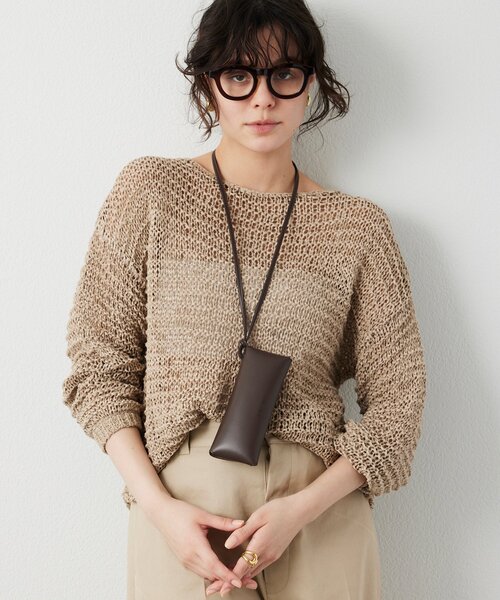 【2026SS】リラクシーな抜け感を演出する、大人のローゲージニット■ローゲージで編まれたニットプルオーバー。■ベルベットのような滑らかなタッチと、特殊形状糸ならではの豊かな表情が魅力。■ゆったりとした編地に、ドロップショルダーとカーブラインの裾を合わせることでリラックス感がありつつも上品なシルエットに。■肌が透けるくらいの緩い編地は、インナーのアレンジ次第でロングシーズン楽しめるのもうれしいポイント。■タンクトップやキャミソールはもちろん、ロンTやキャミワンピとのレイヤードスタイルもおすすめ。【COLOR】ベージュ:落ち着きと軽やかさを併せ持つ大人ベージュ。チャコールグレー:透け感が軽さを演出する、ブラックに近いグレー。【MATERIAL】レーヨンナイロンのベルベット調テープ糸を使った、ドロップガーター編み素材。【STAFF COMMENT】■身長158cm|普段サイズ XS~S|着用サイズ Fリラクシーな抜け感を出すローゲージニット。驚くほど柔らかく気持ちの良い着心地。ゆったりと上品なシルエットで、ロンTとのレイヤードにも、キャミソールなど露出感を出しても綺麗に決まります。■身長161cm|普段サイズ S~M|着用サイズ Fいつものローゲージニットでも近くで見ると表情が違い、新鮮な雰囲気に。キャミソールからシアートップスなどいろいろなアイテムとレイヤードができるので、春服の選び始めにぴったりです。■身長167cm|普段サイズ S~M|着用サイズ Fスエードのようなしっとりした糸のニットがちょっと珍しい!身体に沿うように落ち感があり、肌触りが良いです。透け感を活かして、インナーにロゴTなどを合わせるのもおすすめ!----------------------------------------------------洗濯方法:手洗い可透け感:あり裏地:なし伸縮性:あり光沢感:なし----------------------------------------------------【注意事項】・画像の商品はサンプルです。実際の商品と仕様、加工が若干異なる場合があります。また 、パソコンやスマートフォンのモニター環境などにより、色味が違って見える場合がございます。・店頭及び屋外での撮影画像は、光の当たり具合で色味が違って見える場合があります。商品の色味は、スタジオ撮影の画像をご参照ください。・入荷状況により、お届け予定が前後する場合があります。・お客様への発送が店頭販売より遅れる場合があります。・追加生産商品は、一部の店舗、通販で販売中の場合があります。予めご了承下さい。【気になるアイテムは、「お気に入り」登録を】ハートマークをクリックしておくことで、スムーズにお買い物が楽しめます。・ラスト一点のお知らせ・再入荷のお知らせ・SALEのご案内