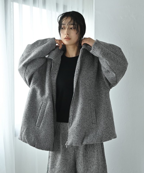 =包み込まれた瞬間、雰囲気が完成する シャギーバルーンジャケット= 毛足のあるカールシャギーがつくる、ふっくらとした立体感。 さっと羽織るだけで空気を含んだような”ニュアンスシルエットが決まる、主役アウター。 軽やかな素材感だから、アウターを脱ぐ季節にも大活躍。 春先はロンTや薄手ニットの上にさらっと羽織るだけでサマになります。 色味も落ち着いているから季節感のつなぎ役としても◎ 身幅66.5cm、肩幅54.5cmのゆるっとボリュームでも重心が下がらない、絶妙なショート丈(71cm)。 高身長さんやLサイズ以上の方でも、バランス良く着映える黄金比。 大きめの襟が顔まわりをシャープに引き締め、 着膨れしやすいシャギー素材でも、モードな表情に仕上がる一枚。 可愛いよりかっこいいがしっくりくる大人のためのシャギーアウターです。 [こんな方におすすめ] ・冬でもモードにまとめたい ・春向けの軽アウターが欲しい ・ゆるシルエットでもスタイル良く見せたい ・アウターは着心地の軽さを重視したい ・ベーシックカラーで雰囲気を出したい [スタイリング提案] ・黒のワイドパンツ×チェルシーブーツでモードに ・同素材ショートパンツとセットで抜け感のある冬コーデ ・タートルネックの上から羽織れば一瞬で洒落見え ・フレアスカートと合わせてボリュームバランスを楽しむ [着用時期]秋・冬・春先 [透け感]なし [生地の厚み]厚手 [伸縮性]なし [光沢感]なし(マットな起毛感) [裏地]あり [柔らかさ]ふわっと柔らかい [ポケット]あり [家庭洗濯]不可(クリーニング推奨) [お色について] ・アイボリー:やわらかいミルク色に、シャギーの光をほんのり含んだアイボリー。 ・深みのある濃グレーに、シャギーの陰影が重なって奥行きのある表情に。