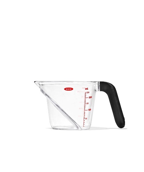 上から目盛りが見える計量カップ OXOのベストセラー製品「アングルドメジャーカップ」が、より機能的で環境にも配慮したデザインに生まれ変わりました。リサイクルトライタンを50%使用し、環境へも配慮。 最大の特徴は、内側に傾斜のある目盛り。上から目盛りを確認できるため、従来のようにカップを持ち上げたり、横から覗き込んだりする手間が省け、正確で効率的な計量が可能です。 持ち手には滑りにくく柔らかな素材を採用しており、角度のついたデザインが手にしっかりなじみ快適な操作を実現します。 また、目盛りはml(ミリリットル)とcup(カップ)の両方に対応しており、料理や製菓など幅広い用途で便利にお使いいただけます。目盛りは見やすく、長期間の使用でもはがれにくい仕様です。 250mlサイズは、日常的に使いやすいサイズ感。通常の1カップよりも多く計量することができるので、ボウルやお鍋に移し変える際にスレスレでこぼれるといった心配がありません。 電子レンジでの使用にも対応(固形物や油分・糖分を多く含むものを除く)し、日常の調理で多目的に活躍します。 [サイズ] 横幅 15.5 × 奥行き 9 × 高さ 8.2(cm) [製品仕様] 〇 食洗機、電子レンジ [ご注意ください] ※ディスプレイの性能やご利用環境によって、商品の色が実物と異なって見える場合があります。予めご了承ください。 【OXO】 OXOは、誰もが使いやすい製品を追求することで日常生活を快適にすることを目指しています。ユーザー視点を徹底的に研究し、細部に配慮した革新的なデザインが特長です。