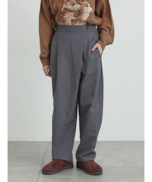 ゆとりのあるシルエットで動きやすく、デイリーに取り入れやすいリラックス感のある一本。 スウェットやニットと合わせるだけで大人カジュアルにまとまり、季節を問わず使える着回し力が魅力です。 シンプルながらも程よい個性を添えてくれるので、普段のコーデに変化をつけたい時にも活躍します。 ※商品画像は、撮影環境やお客様のご利用のPC・スマートフォンのモニター環境などにより実物と色味に差異がある場合がございます。 【その他採寸】 F ウエスト:[後ゴム仕様]70cm
