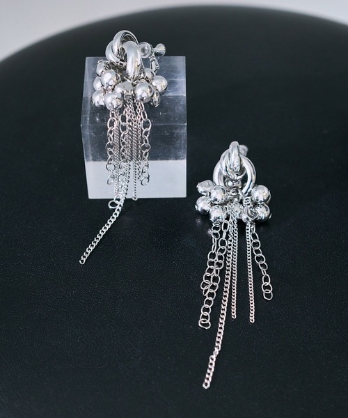 ーーーパーツの揺れ感が女性らしさを演出してくれるイヤリングーーーpoint□ボールパーツとチェーンのパーツを組み合わせたデザイン□ボリュームがあり華やかな印象□ホワイトはフォーマルにも使えて上品な印象□シルバーは存在感抜群でモードでかっこいい印象stylingオケージョンシーンやドレスアップされたスタイルに合わせると洗練された印象に仕上がります。アップスタイルにつけると存在感も出てオススメです。※加工を施した画像を使用しております。実物と色味が異なる可能性があるため、色味は詳細後ろにある生地寄り画像を参考にお願いいたします。あらかじめご了承下さい。