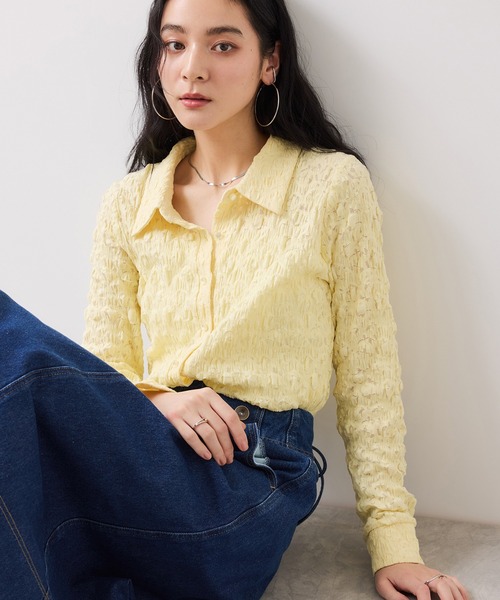 《美得プライス》 女性らしさ・スタイルアップ・上品さを、手に取りやすいプライスで叶えるVISの「美得プライス」トップス。【2026 Spring】【26SS】今シーズンマストのお洒落なレースシャツ!<POINT>・透け感が無いレース素材を使用【デザイン・シルエット】選りすぐりの可愛いレース素材をシンプルなデザインに落とし込んだレースシャツです。ストレッチレース素材を使用しているので、程良く体にフィットするシルエットに仕上げています。一枚着としてはもちろんですが、羽織りとしても使えるアイテム!【素材】手洗い可能。程良くフィット感のあるストレッチレースを使用しています。【カラー】ベーシックなブラック、オフホワイトと春らしいライトイエローの3色展開。【おすすめのスタイリング】透け感があまりないレース素材なので、一枚着としての着用がおススメですが、ジャケットインやベスト等のインナーにもおすすめ◎-----------------------------裏地:なし光沢感:なし透け感:あり伸縮性:ありポケット:なしボタン:あり(開閉可)生地の厚さ:やや薄手季節:春、秋-----------------------------【モデル着用サイズ】身長:168cm 着用サイズ:F※画像の商品はサンプルです。 実際の商品と仕様、加工、サイズが若干異なる場合がございます。※画像によっては実際の色味と異なる場合があります。正しい色味は生地アップ画像をご確認ください。
