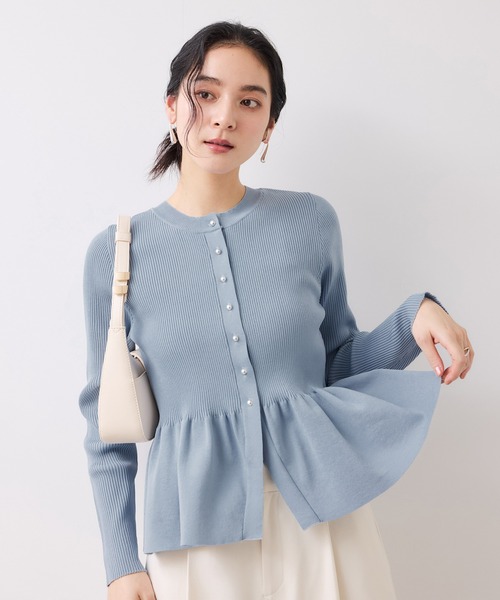 《美得プライス》 女性らしさ・スタイルアップ・上品さを、手に取りやすいプライスで叶えるVISの「美得プライス」トップス。【2026 Spring】【26SS】人気のぺプラム切替ニットが春夏素材で登場!一枚で着映え&美シルエットが叶うするペプラムニットカーディガン・ご自宅でお洗濯可能なマシンウォッシャブル素材・1枚で着映えするニットカーデ・羽織にもトップス使いにもおすすめ◎・上品なシルエットで通勤やお出かけにも着回し力抜群【デザイン・シルエット】縦のラインを意識した身頃と程よいふくらみの裾ペプラムのコントラストで1枚で着映えします。トレンド感のあるシルエットでオンオフ様々なシーンで着回しの効くアイテムです。マットシルバーのメタル釦で洗練された女性らしさを演出します。【素材】洗濯機洗い可能。毛羽立ちや毛玉が出来にくいアンチピリング素材。伸縮性があり程よい肉感のスポンジングニットで窮屈感なく着用いただけます。【カラー】ホワイト、ネイビー、サックスの3色展開。シーン問わずご着用いただけるカラーラインナップ。【おすすめのスタイリング】パンツスタイルがおすすめ◎。キレイ目のパンツからデニムまでオンオフ問わずスタイリングしていただけます。-----------------------------裏地:なし光沢感:なし透け感:ホワイト(10)のみややあり伸縮性:ありポケット:なしボタン:あり(開閉可)生地の厚さ:普通季節:春、秋-----------------------------【モデル着用サイズ】身長:168cm 着用サイズ:F※画像の商品はサンプルです。実際の商品と仕様、加工、サイズが若干異なる場合がございます。※画像によっては実際の色味と異なる場合があります。正しい色味は生地アップ画像をご確認ください。