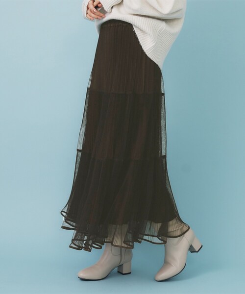 2wayリバーシブルが嬉しいチュールティアードフレアスカート※C58-74025と同一商品です【デザイン】・軽やかなチュール素材を使用したティアードデザインが、動くたびに揺れるエレガントな印象を与えます。・微光沢のプリーツとのリバーシブル2way仕様で、一枚で印象をガラッと変えられます。・ウエストはゴム仕様で、快適なフィット感を提供しつつ、着脱もスムーズ。・動きやすいフレアシルエットが、華やかさをプラスして特別なシーンにもぴったり。・シンプルながらも存在感のあるデザインで、様々なスタイルにマッチします。【素材】・軽やかなチュール素材が、長時間の着用でも快適さをキープ。・微光沢の輝きが、上品で華やかな雰囲気を演出します。・洗濯機での洗濯が可能で、デイリー使いにも最適なアイテム。【仕様】・ポケットなし・ウエスト総ゴム・裏地なし・リバーシブル仕様※こちらの商品はやや透け感があります。※照明の関係により、実際よりも色味が違って見える場合があります。また、パソコン・スマートフォンなどの環境により、若干製品と画像のカラーが異なる場合もございます。モデル情報:身長159cm B75 W56 H81 着用サイズ:00店舗へのお問い合わせ商品番号:C58-75029●製品寸法:00(FREE):W65cm 総丈80cm備考:
