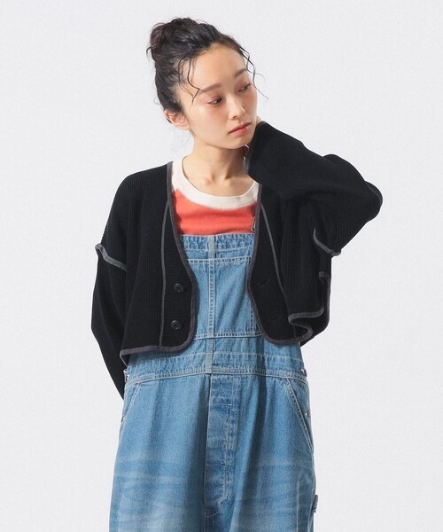 ショート丈で美バランス、旬のミリタリーニット ■デザイン 〈BEAMS BOY(ビームス ボーイ)〉で馴染みのある、M-65パーカーの付属のミリタリーライナーをニットで表現したカーディガンが今年も登場。肩の切り替え部分はパイピングで表現し、裾や袖口のパイピングは配色で表現しています。 ■コーディネート カットソーやワンピースにサラッと羽織るだけで、ワンランク上のコーディネートに。ボトムスはワイドシルエットが相性◎ ■サイズ 身幅がゆったりで、ストレスフリーなサイズ感。短めの着丈のためバランスよく着用いただけます。今シーズンはM,Lの2サイズご用意しました。 ■素材 ドライな質感と上品な光沢感がさらりとした手触りに。洗練されたカジュアルシーンにぴったりのひと品です。 ■ケア方法 手洗い可(詳細は商品についている品質表示ラベルをご覧ください) 【OLIVE】Model : H164 B72 W59 H85 Size : 1 【BLACK】Model : H161 B76 W60 H82 Size : 2 ※アイテムサイズは商品サンプルを採寸しているため、実際の商品と多少の誤差が生じる場合がございます。 ※画像の商品はサンプルのため、実際の商品と「仕様」「色合い」が異なる場合がございます。