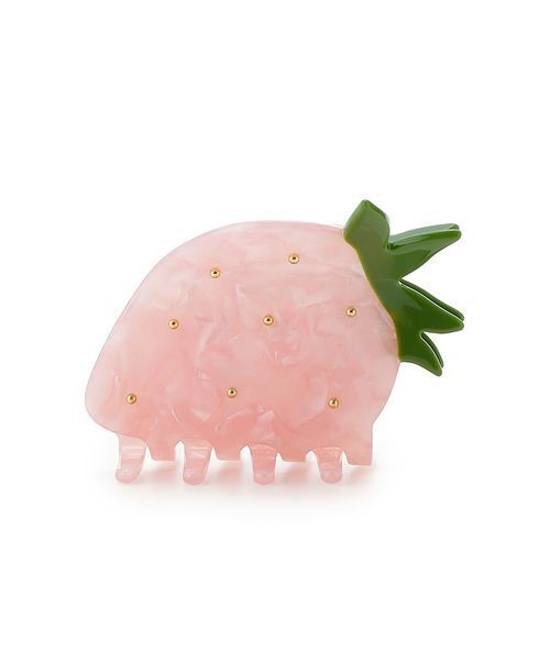 【ヘアアレンジが楽しくなるストロベリー型ヘアクリップ】 【Design/Styling】 ストロベリーのつぶつぶをゴールドのパーツで表現した、アセチ素材のヘアクリップ。ジューシーな質感の生地と、葉っぱの部分までリアルな形にこだわりました。ハーフアップにちょうど良い大きさなので、ボブからロングまで幅広いレングスの方にご使用いただけます。同シリーズの小物やルームウェアと組み合わせてお楽しみください。 ※照明の関係により、実際よりも色味が違って見える場合があります。 またパソコン・スマートフォンなどの環境により、若干製品と画像のカラーが異なる場合もございます。予めご了承ください。 商品の色味は、商品単品画像をご参照下さい。 ※商品画像はサンプルのため、色味やサイズ等の仕様に変更がある場合がございますので、予めご了承ください。
