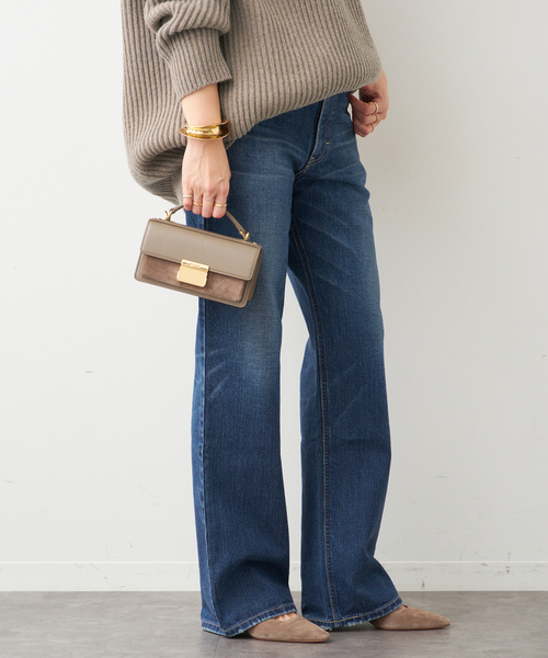 毎シーズン大好評のLee別注 5ポケットデニムが待望の再入荷!1942年カーボーイパンツ101をリリースし、今は名称をライダースと変更した歴史あるモデルをアレンジ。金茶×イエローのステッチ、バックポケットの飾りステッチ、ネーム、ボタン…Leeならではのディティールを楽しみつつ、今気分のすっきりとした細身のシルエットのデニムに。程よい加工感がスタイリングの幅も広げ、シーズンも長く着こなしを楽しめる1本。デニムのセットアップが楽しめるように別注したLeeのデニムシャツとの大人の女性のカジュアルコーディネートもおすすめです。●同ブランドのデニムシャツはこちらでご用意しております。Lee デニムシャツ:26050500701010*********************透け感:なし裏地:なし伸縮性:なし光沢感:なし生地の厚さ:普通*********************【スタッフ着用コメント】《STAFF.H》30代後半/身長:153cm/体型:普通/普段サイズ:S/着用サイズ:36サイズ感:ヒップやもも回りはすっきりとしたシルエット。いつものサイズよりワンサイズアップして着用するとぐっとこなれた感が出ます。素材感:ヴィンテージデニムのような加工感がかっこよく、穿き込むほどに味が出る素材感です。着心地:程よい厚さで硬くなく、すっきりしたシルエットなのでローヒールとヒールどちらでもバランスの取りやすいデニムです。*********************※加工によりダメージ具合やサイズ感には若干の個体差がございます。予めご了承下さい。※取り扱いについては、商品についている洗濯表示にてご確認下さい。※同一商品:24030500716030(若干の仕様変更がある場合がございます。)※照明の関係により、実際よりも色味が違って見える場合があります。またパソコン・スマートフォンなどの環境により、若干製品と画像のカラーが異なる場合もございます。※商品の色味は、商品アップ画像をご参照ください。※こちらの商品はお一人様1カラー・1サイズにつき1点までの購入とさせていただきます。本体:洗濯機洗い(弱)